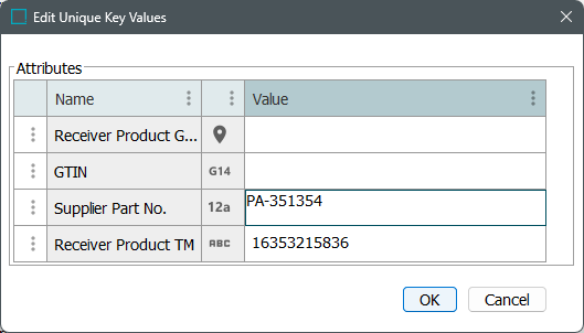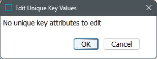 Unique Keys provide a special way of designating objects for identification outside of STEP. Selecting the 'Edit Unique Key Values' action on an object with active unique keys will display the 'Edit Unique Key Values' dialog, allowing users to edit any unique key related attributes on the object.