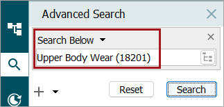 Only after selecting an object will the 'Search Below' action become selectable. Once this option is selected, the 'Search' tab will perform populate with a 'Search Below' for that object. Click the Search button to perform this query.