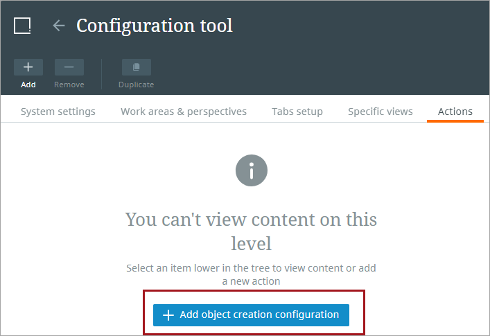 Click the Add object creation configuration button.