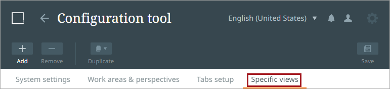 To create a new browse table configuration, select the Specific Views tab.