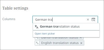 Navigate to the 'Table settings' heading. In the columns section, there are two ways to access the 'Languages' option: