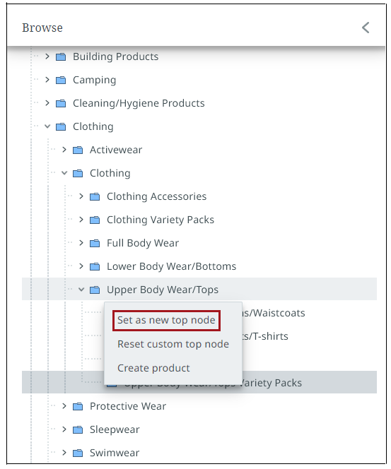 The top node of the hierarchy can be changed at any time by simply right-clicking the desired node and selecting Set as new top node from the context menu.