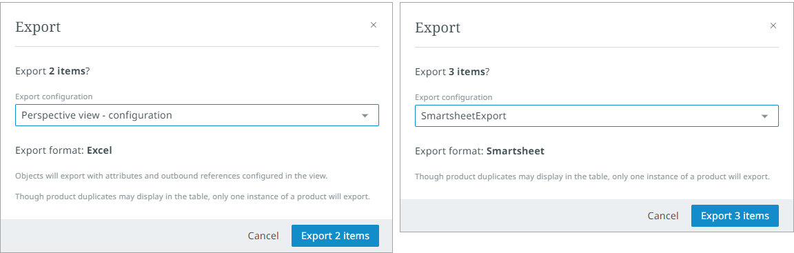 Next, select an export configuration that you have previously set up in STEP Workbench. For example, before a Smartsheet can be downloaded and edited, a Smartsheet data export or template configuration must be created in the Export Manager. Refer to the Smartsheet Data and Template Configurations topic in the Data Exchange documentation.
