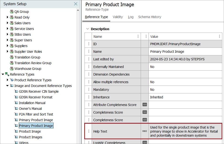 2. Navigate to Users & Groups in the System Setup menu, and under the System Settings tab, verify the value of the variable under the 'Product Information Manager Default Settings' flipper of 'Product Attribute Help metadata attribute' is set with the attribute created in step 1.
