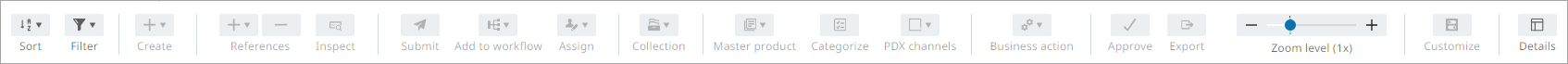 Master product - These actions allows users to manage master product families and add products to them. Refer to the Managing Master Products topic for more details. Available in the Tasks, Browse, and Collection perspectives. This button will only appear for users of the Accelerator for Retail solution.