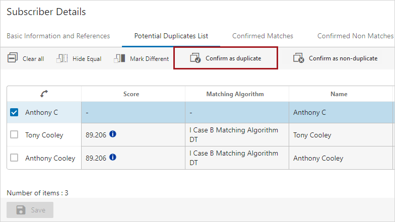 For more information, refer to the topic Potential Duplicates List.
