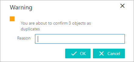 Explain why the objects are duplicates and click OK.