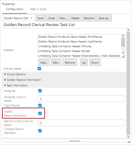 Use these steps to configure an existing Clerical Review Task List for the Machine Learning Match Recommendations. To create a Clerical Review Task List, refer to the topic Golden Record Clerical Review Task List.