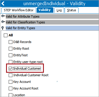 - On the Workflow, click the Validity tab, and select the unmerge object type.