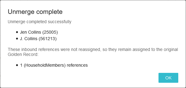 - Surviving Values - a preview of the configured surviving data values after a completed unmerge operation.