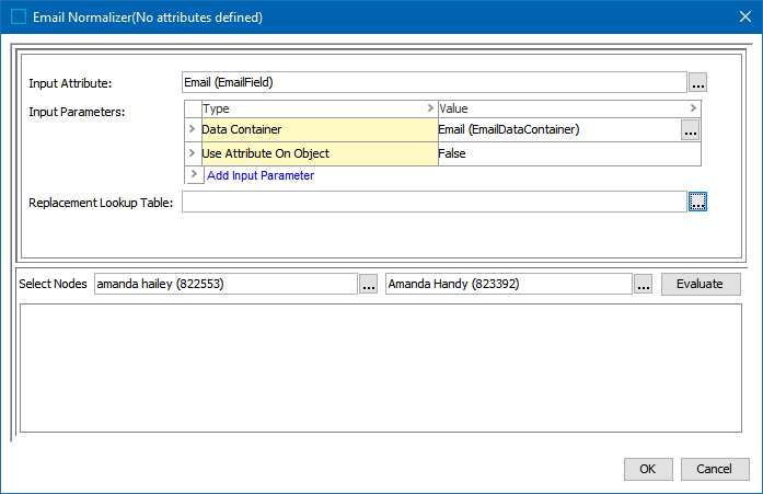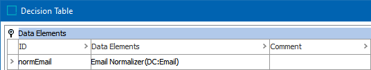 After adding the email normalizer in the Data Elements flipper of the Decision Table dialog (defined in the topic Match Criteria), configure it as follows: