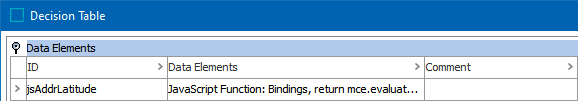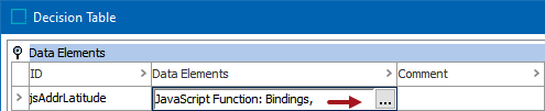 After adding the JavaScript function in the Data Elements flipper of the Decision Table dialog (defined in the topic Match Criteria), configure it as follows: