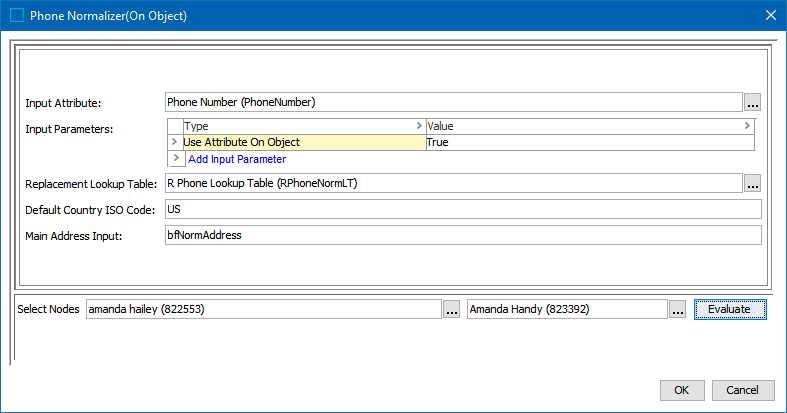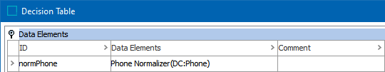 After adding the phone normalizer in the Data Elements flipper of the Decision Table dialog (defined in the topic Match Criteria), configure it as follows: