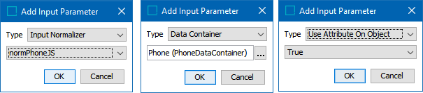 Right-click the arrow in the first column of the Input Parameters table for additional display and edit options. Although it appears that the default 'Use Attribute On Object' parameter can be removed, after closing the dialog it will continue to display. Instead, if a different input parameter is used, click the Value dropdown and manually set 'Use Attribute On Object' option to 'False.'