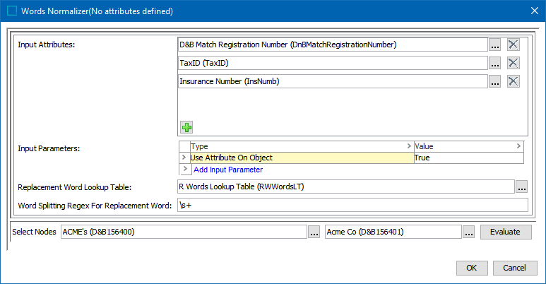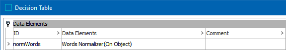 After adding words normalizer in the Data Elements flipper of the Decision Table dialog (defined in the topic Match Criteria), configure it as follows: