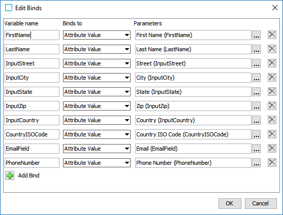 • For Parameters, when available, click the ellipsis button () to specify an object to bind.