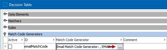 After adding the match code generator in the Match Code Generators flipper of the Decision Table dialog (defined in the topic Match Criteria), configure it as follows: