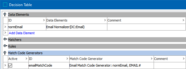 Emails are often good match codes. The match code prefix is prepended to every email output by the email normalizer.