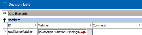 After adding the JavaScript Function Matcher in the Matchers flipper of the Decision Table dialog (defined in the topic Match Criteria), configure it as follows: