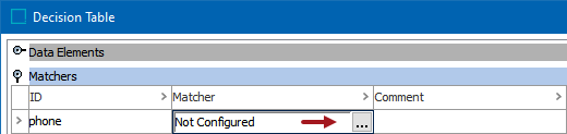 After adding the Phone Matcher in the Matchers flipper of the Decision Table dialog (defined in the topic Match Criteria), configure it as follows: