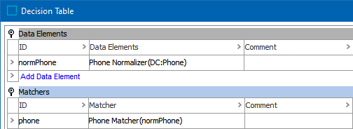 The Phone Matcher takes input from the selected phone data element and retrieves all phone numbers for the two objects under comparison.
