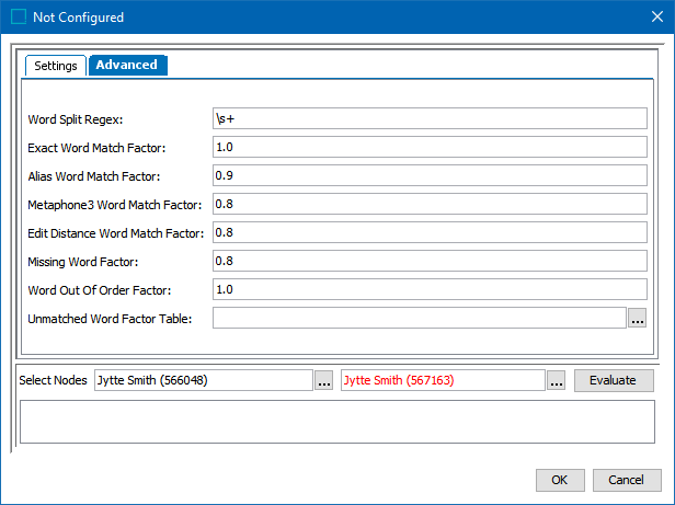 • For the required Metaphone3 Word Match Factor, enter how greatly pairs via Metaphone 3 influence the final score.