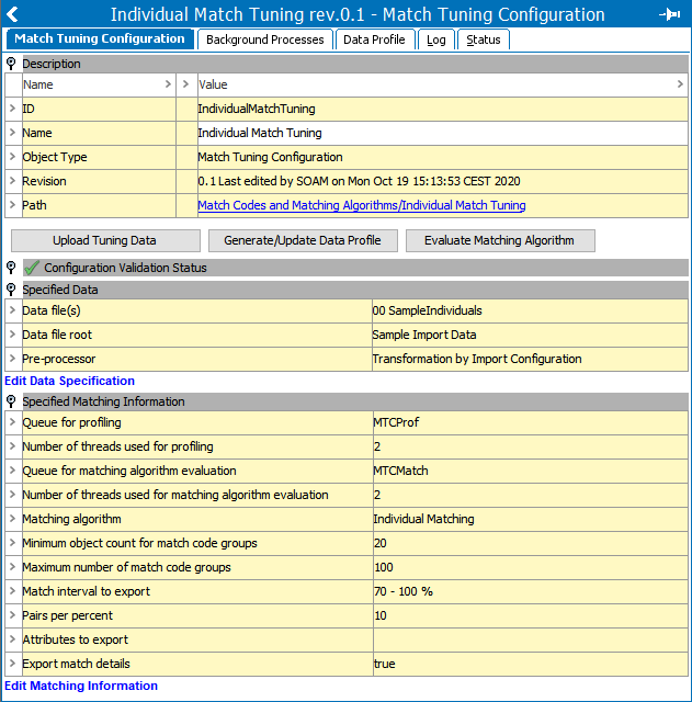Click the 'Match Tuning Configuration' tab to view the overall configuration.