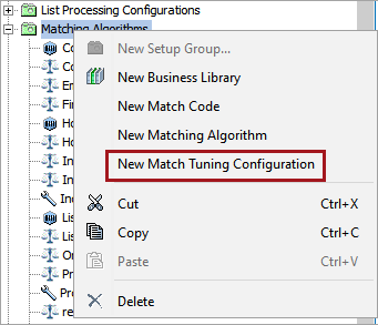 In the System Setup tab, right-click the match tuning configurations node and select 'New Match Tuning Configuration.' The name of the node on your system may be different than shown in the images.