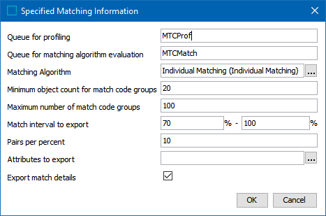 Match interval to export - Specify an interval that includes pairs expected to be both matches and non-matches, as well as pairs that are not clear matches or non-matches. Only pairs with scores within this interval are exported.