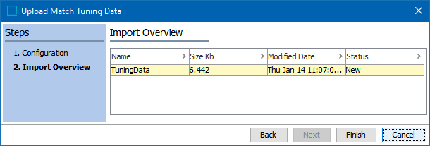 Click Next to review the Import Overview and click Finish to upload the tuning data. Any errors with the import are displayed.