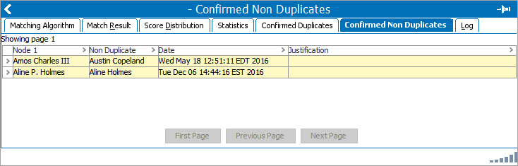 Confirmed Non Duplicates Tab