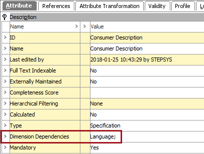 To review the attributes with this option enabled, export all attributes as Excel and in the output file filter on <Attribute Dimension dependencies>.