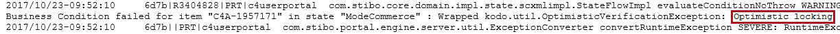 Warning for optimistic locking caused by business condition transaction in state 'ModeCommerce' in Web UI 'C4userprotal'