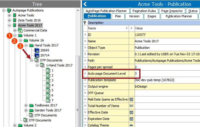 Example: You have a publication that has section (Level 1), subsection (Level 2), and another subsection (Level 3) under it. If you are going to add products under Level 1 then you will be unable to choose 3 under 'Auto page Document level.' The storage level will be restricted to '1,' which means that the DTP documents will be stored under Level 1.