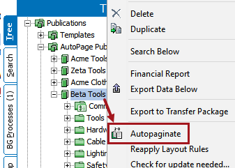 - In the Tree, select and right-click on the publication, section, or subsection that you want to paginate, then click Autopaginate.