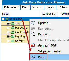 - If using the AutoPage Publication Planner, select the sections or subsections that you want to print, then right-click and choose Print.