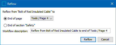- In the Reflow dialog, select either 'End of page' or 'End of section,' then click Reflow.