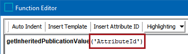 - In the Function Editor, replace ‘AttributeId’ with the ID of the metadata attribute that you would like to pull onto the page. Refer to the examples in the following section for how the function will look in the editor after an actual attribute ID is added.