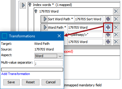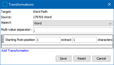 Click on the transformations icon to the right of the first Word Path field to display the Transformations dialog.