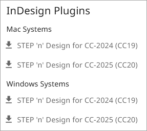 - Select the plugin that matches the version and platform of InDesign that you are running. For Windows users, the plugin is contained within a .ZIP file. For Mac users, the plugin is contained within a .dmg file. The file should download automatically, though the file may download differently depending on your browser settings.