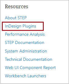 - In your browser, navigate to the Start Page for your STEP system and locate the InDesign Plugins link under Resources.
