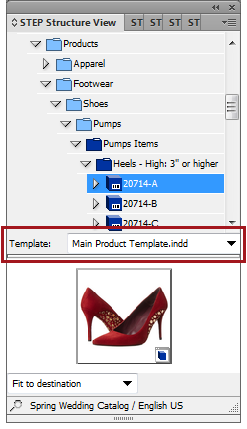 Most of the work in Print Publisher is carried out from the STEP Structure View, as products and other objects are dragged from the Structure View tree onto InDesign pages.