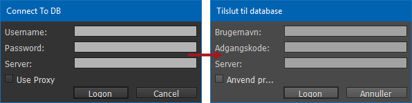 - Connect To DB dialog: