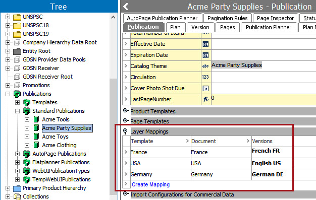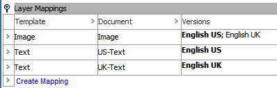 If you plan to set up a publication in which you would like all publication versions to mount onto the InDesign publication template / mounting page at the same time, you must define which layer each publication version will placed onto. This definition is accomplished through Layer Mappings. Layer mapping is required when the intent is to mount multiple versions onto multiple layers at one time and applies to multi-versioned publications created with any Print Publisher component—Print Publisher (drag and drop), Print Flatplanner, and Print AutoPage.