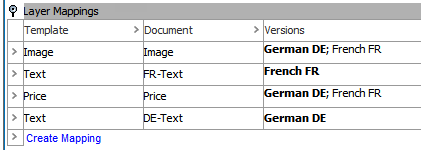 - In the Document column, enter the name of the corresponding layer in the publication template / mounting document. Recommended practice is for the names of the layers to match on both templates. If the publication template does not already have layers, the layers will be created from the product template when a product is mounted. The created layers will be given the names provided in the layer mapping.