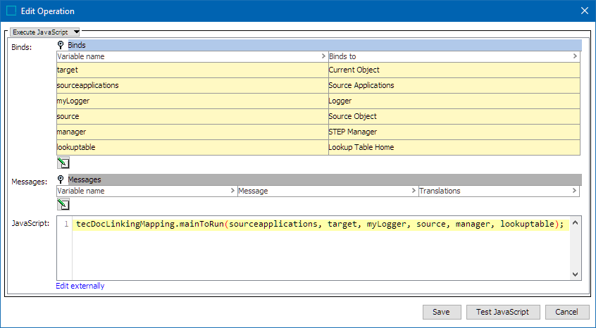In the Edit Operation dialog, optionally add Messages, as defined in the Localized Messages for JavaScript Business Rules topic.