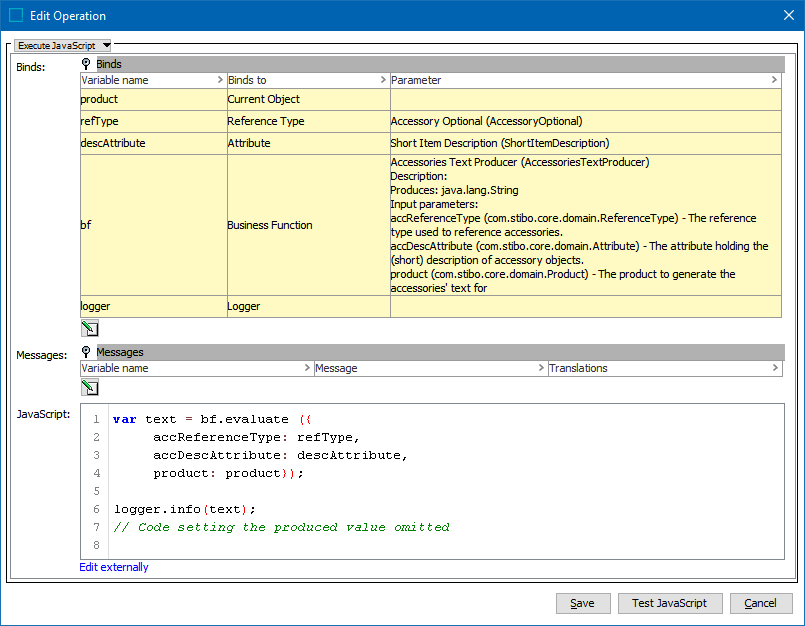 In the Edit Operation dialog, optionally add Messages, as defined in the Localized Messages for JavaScript Business Rules topic.