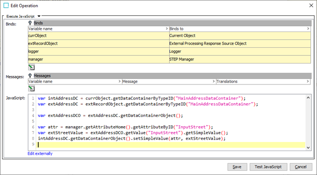 var extAddressDC = extRecordObject.getDataContainerByTypeID("MainAddressDataContainer");