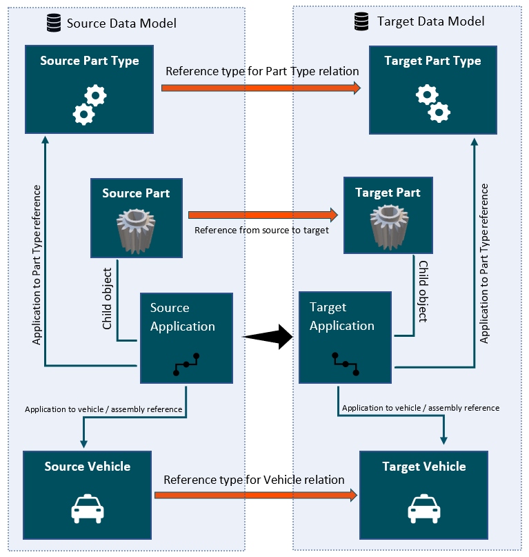 • Establish a reference between the source part type and the target part type