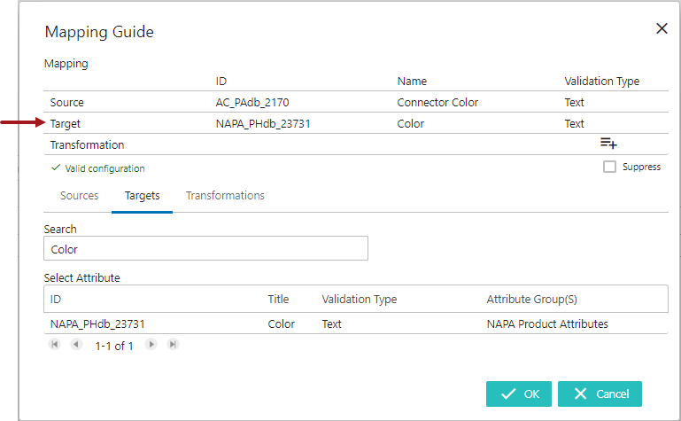 Once selected, the attribute will be populated in the Target field (as shown below).